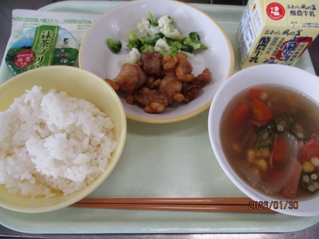 きらきら星スープにはオクラの輪切りが浮かび、1年生で学習する「きらきらぼし」を思わず歌いだしたくなるメニューでした。