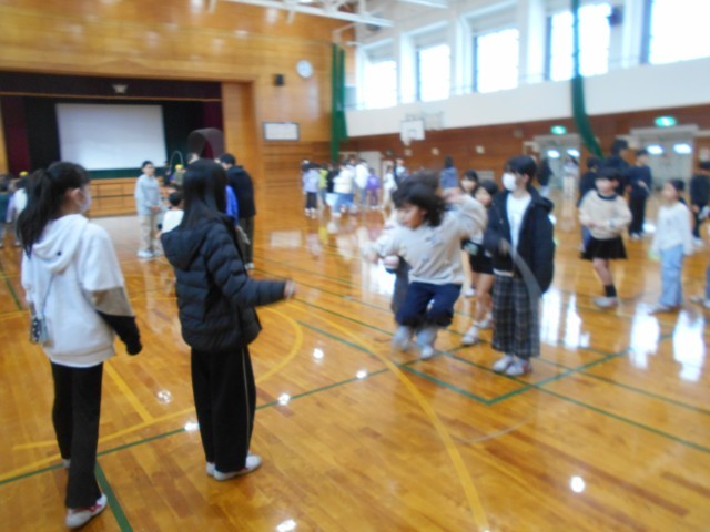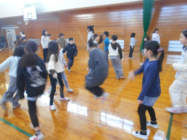 縄跳び大会に向けて、朝のスタートタイムに大繩の練習をしています。高学年の子供たちは、低学年の子供たちが跳びやすいように、縄を回す速さを調整したり、背中をそっと押して縄に入るタイミングを教えてあげたりしています。おかげで、低学年の子供たちも、縄を怖がらず嬉しそうに練習に参加しています。