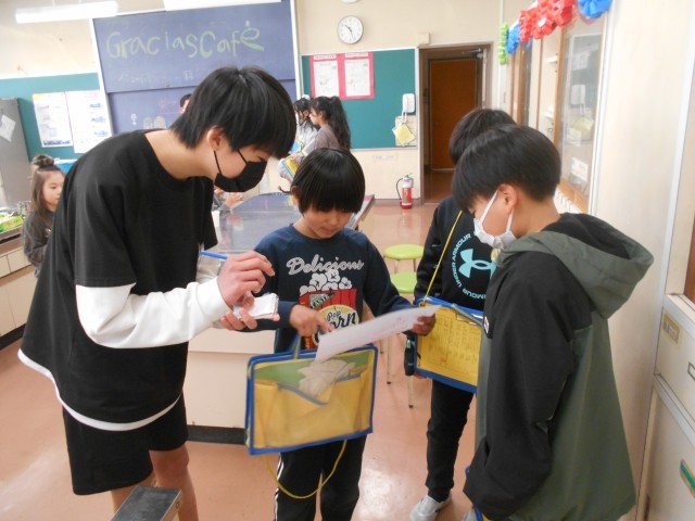 「グラシアス・カフェ」「ありがとうを伝えようムービー」「サンクス・シューティーング」等、お店の名前にも感謝の気持ち伝えたいという6年生の気持ちが表れていました。くじや輪投げ、迷路、フリースロー対決、カフェを楽しみながらお悩み相談をしてもらえるお店など、行ってみたくなるお店ばかりで、気付いたらあっという間に時間が過ぎていました。廊下ですれ違う下級生たちが、6年生からもらったメッセージカードや景品を嬉しそうに見せてくれる様子から、6年生の思いがしっかり伝わってくれているのを感じました。達成感と満足感でいっぱいになりました。