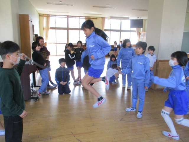4年生と大繩の対決しました。どのチームも本番に強く、過去最高記録を更新しました。これまで練習を積み重ねてきた成果が出ました。