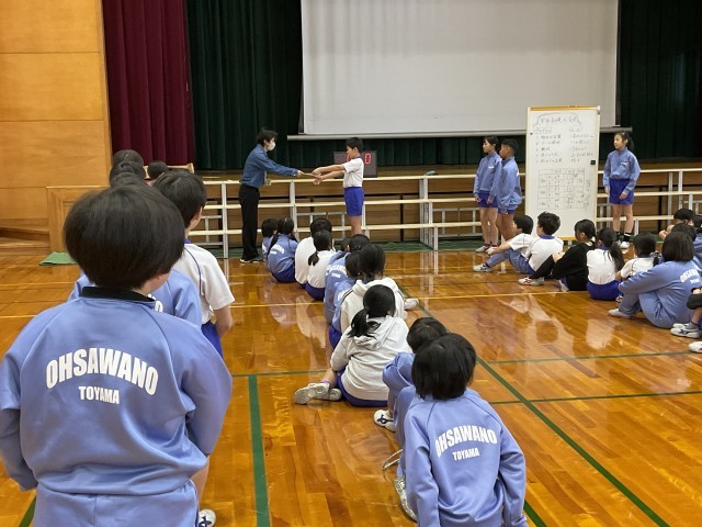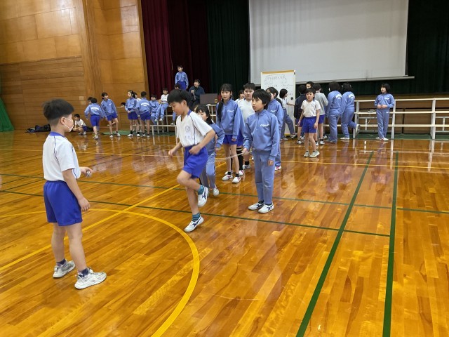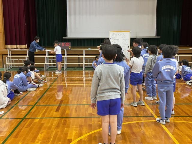 クラス対抗の8の字跳び大会を行いました。最高記録は1組の113回で、平均記録の最高は2組の102回でした。「連続跳びで最高記録を目指す」「連続ではなくても跳べるようになる」など、それぞれが目当てをもって取り組みました。