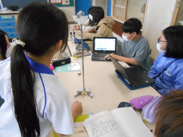 ふりこを使った実験をしました。「ふりこの長さ」「おもりの重さ」「振れ幅」の3つの条件と、ふりこが1往復する時間にはどのような関係があるかを調べました。子供たちは、これまで学んできたことを生かしながら熱心に実験をしていました。
