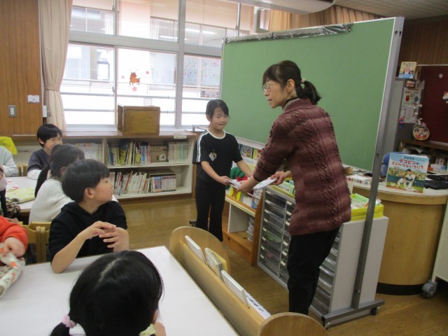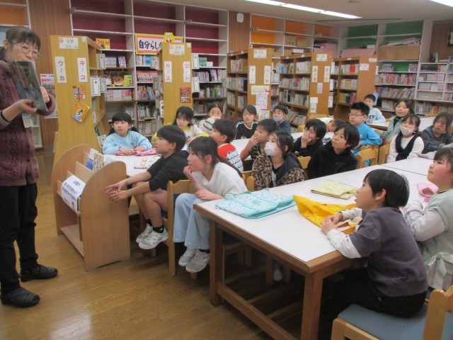 今年度最後の図書の時間でした。読み聞かせやおすすめの本を紹介していただいた司書の先生に、1年間の感謝の気持ちを伝えました。