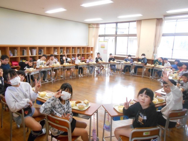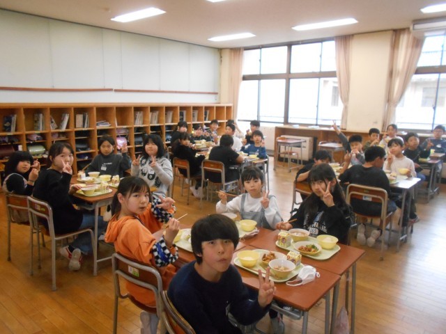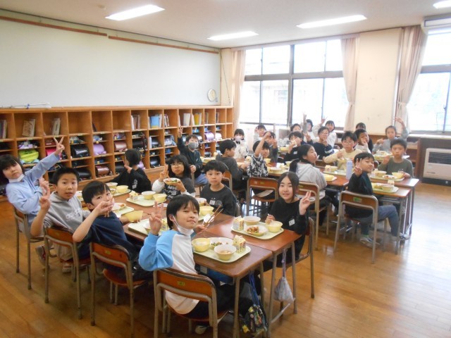 今日から給食が始まりました。5年生になって給食の量が増えましたが、子供たちはおいしそうにたくさん食べていました。これからも、調理員さんや食材に感謝しながらいただきたいと思います。