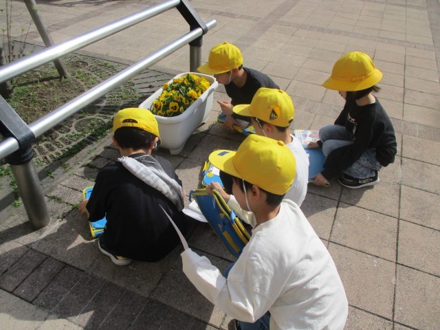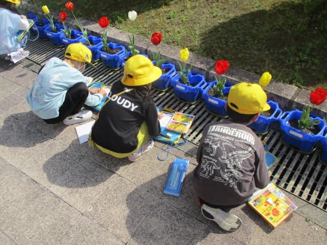 図画工作科では、「きせつをかんじて」の学習で、春を感じるものを見つけて絵を描きました。