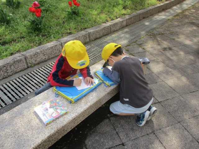 さくらやチューリップなどをよく観察しながら、色の塗り方を工夫しました。