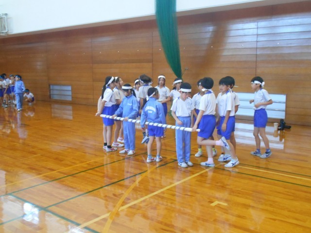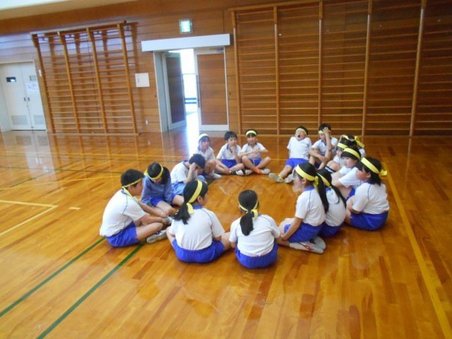 中学年競技の「台風の目」を行いました。それぞれの団で作戦を立てました。様々な意見が出て、「優勝したい」という思いがあふれていました。