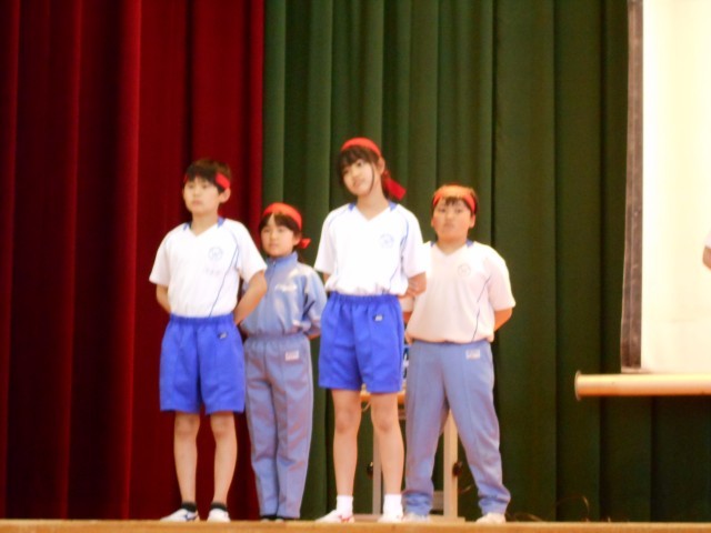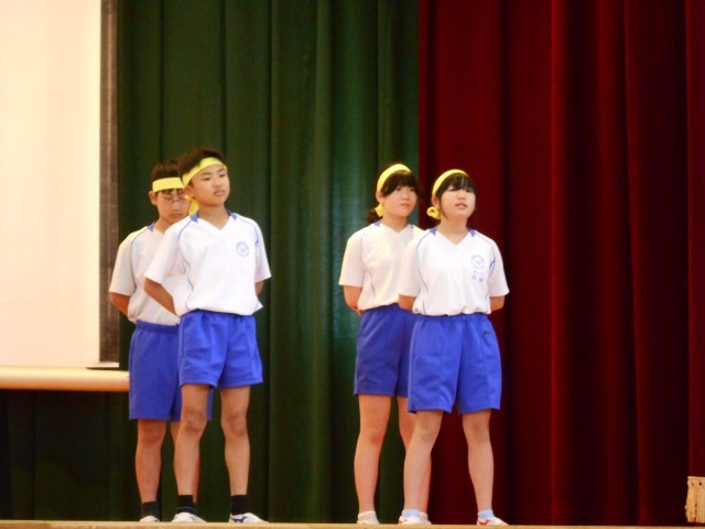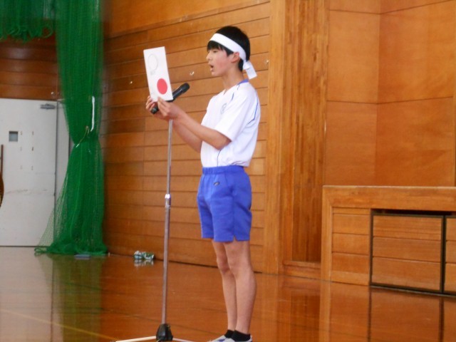 各団の団長が自己紹介をして、応援団長がスローガンを言いました。全校に向けて、大きな声で堂々と声を出す姿が見られました。
