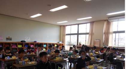 3年生になって初めての給食でした。 「黙食」を守って給食を食べる子供たちでした。