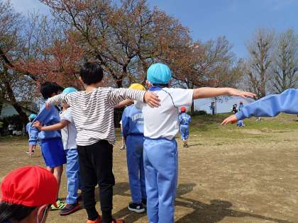 体育の後、そのままグラウンドに残って鬼ごっこやケイドロをしました。少し肌寒い中、汗をかくまでたくさん遊びました。