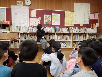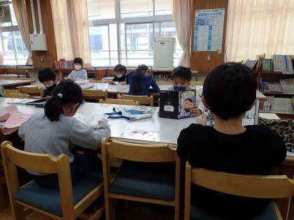 今日は、図書室の司書の先生から詩の本を紹介していただいたり、本の借り方を確認したりしました。どんどん本を読んで、知識を増やしたり考えを深めたりしてほしいと思います。