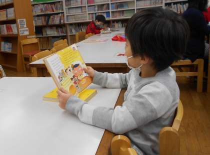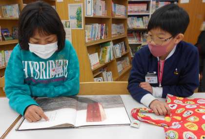 図書室オリエンテーション 公開日 2021/04/19 更新日 2021/04/19 すみれ・ひまわり 今日は、図書室オリエンテーションがありました。図書室の先生から「のはらうた」の詩からクイズを出してもらった後、図書室の使い方を確認しました。その後は、1年生は初めての貸し出しでした。2年生以上も久しぶりの貸し出しで、自分の好きなジャンルの本をじっくり読んでいました。