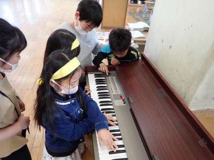 今日の昼休み、楽しそうにオルガンを弾いている子供たちがいました。仲良く集まっている様子が印象的でした。