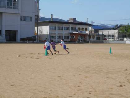 今日は、台風の目の練習をしました。少しでも早くバトンを渡そうと、仲間と協力しながら一生懸命走りました。