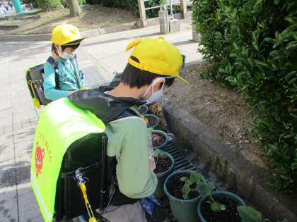 早速、朝から野菜の水やりです。 「元気だったよ」とうれしそうでした。
