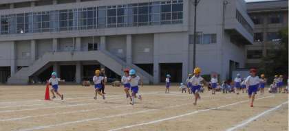 運動会に向けて、プログラム順に、50m走、風の子タイフーン、ダンスをしました。