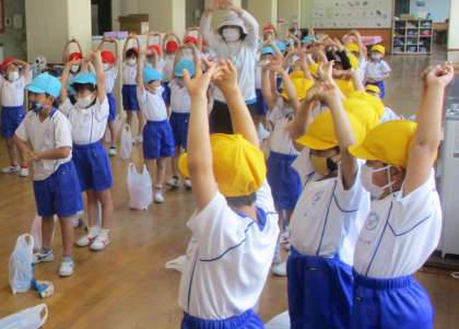 「1,2,3,4,5,6,7,8!!」 かけ声の大きさから気合いが感じられました! いよいよグラウンドへ出発です!