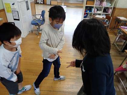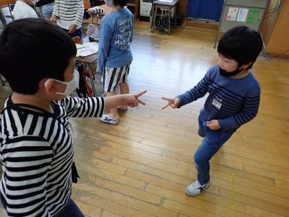 1〜20の数字を英語で発音した後、英語でじゃんけんをしました。じゃんけんが大好きな子供たちは、夢中でじゃんけんをしていました。