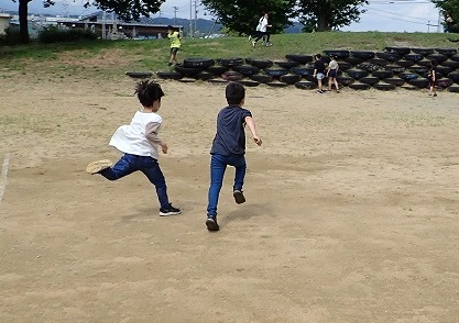 今日は、大休憩の時間晴れていたので、外で遊びました。ケイドロをしている子供たちやボールで遊んでいる子供たちなど、大いに体を動かしていました。