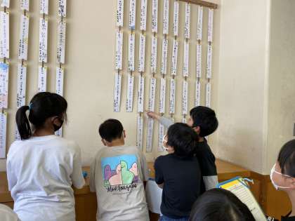 今日は国語で作った俳句と、図工の作品を鑑賞しました。