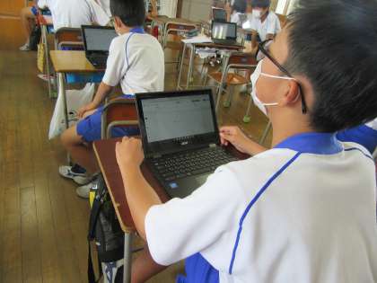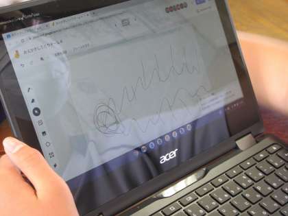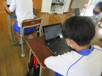パソコンを使って、絵しりとりも行いました。友達が描いているイラストが自分のパソコンにもリアルタイムで反映されます。自分の番を待っている時間も楽しめましたね。