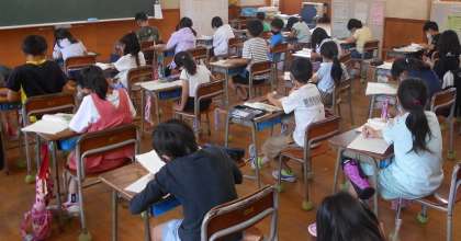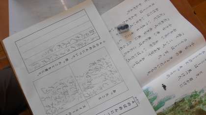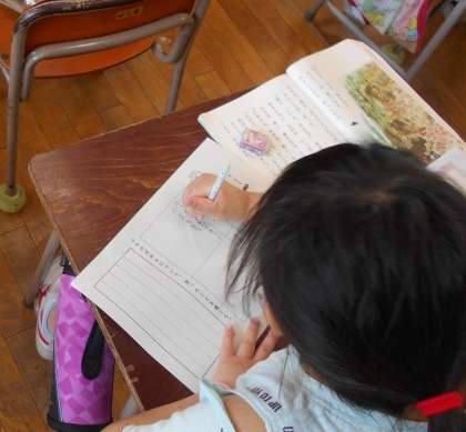 4場面のおはなしを「あったこと」と「スイミーがしたこと」に分けて、まとめました。教科書の中から探し出して、ワークシートに書きました。