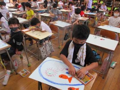 今日は、卵からどんな世界が生まれるか想像を広げながら、楽しく描きました。