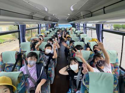 子どもの村へ出発です。 天気に恵まれ、子どもたちも元気いっぱいです。