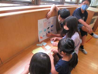 今日は1年2組のみなさんと仲良くなることができました。1年生に分かりやすいように、丁寧に教える6年生です。