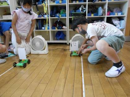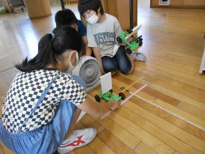 風のはたらきを調べる実験をおこないました。友達と協力して一生懸命実験していました。