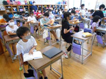 今回の学習参観では、クロームブックを使った学習の様子も、家族の方に見ていただきました。