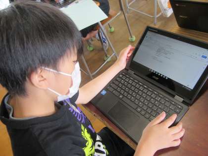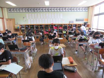 提案文は、クロームブックを使って作成しました。文章を作成するのは、初めての活動でしたが、「やっていくうちに、タイピングが上達して嬉しかった」「この学習は、大人になってからも役立つと思う」「納得のいく文章が書けたから、早く実行したい」と達成感を味わう子供たちの姿が見られました。