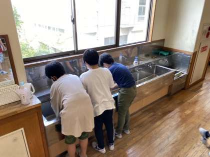 1学期お世話になった机、椅子、ロッカー。それだけではなく、みんなが使った場所も、汚れている場所を見つけて進んできれいにしていました。