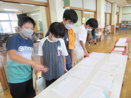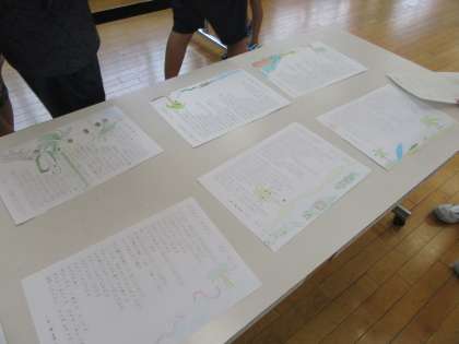 国語科の学習で視写をした作品を鑑賞しました。詩の内容に合ったイラストも描きました。力作ぞろいで楽しい鑑賞会になりました。