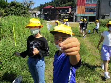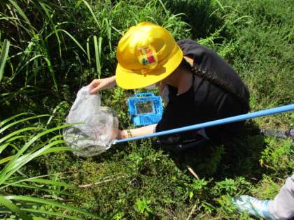 虫の体のつくりを観察するために、虫の採集に行きました。とても暑い日でしたが、短い時間で一生懸命活動に取り組みました。