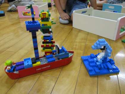 レゴクラブでは、グループに分かれて作りたいものを作っています。