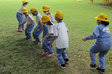 班のみんなクイズを探したり、大縄やフラフープくぐり、ボールおくりをしたりしました。
