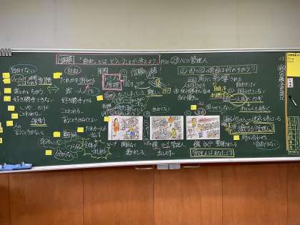 他人を困らせることはないか、自分の心で判断することの大切さや、一人のよい意識が、途絶えることなくつながれていくことの重要性など、子供たちは、きまりや自由の在り方について、様々な見方で考えを深めていました。