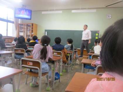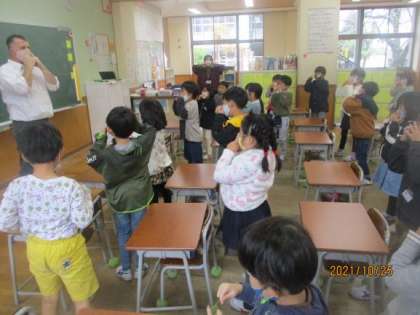 ALTの先生と初めて外国語活動をしました。