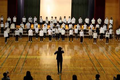 5年生は、ボディパーカッションと合唱2曲を披露しました。