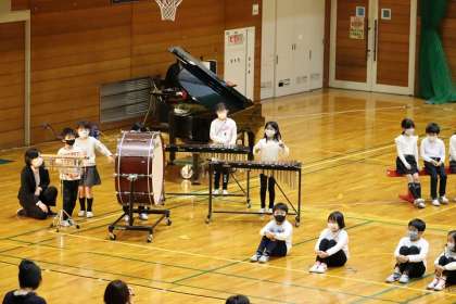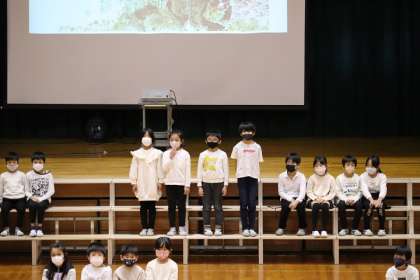 今まで練習した成果を発揮して、友達と声を合わせて発表できました。くらげやいせえび、いそぎんちゃくなど、海の生き物になりきって演技していました。「がんばったところをおうちの人に見てもらったよ」と、うれしそうでした。