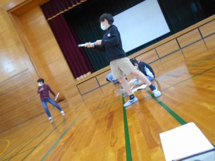 隣の友達とどちらがより遠くに飛ばせたかを競う姿も見られました。