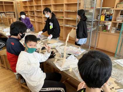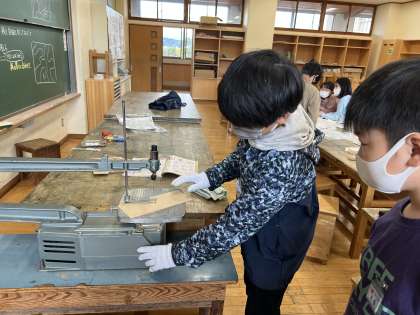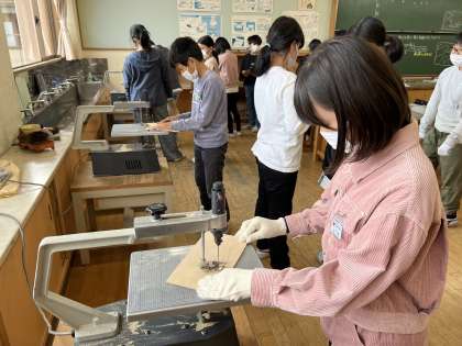 最初は初めての糸のこにどきどきしていましたが、慣れてくるとすいすいと切れる糸のこのよさに気付き、楽しんでいました。
