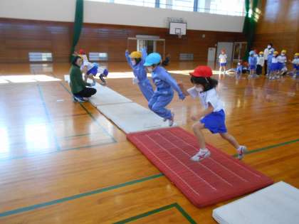 体育の学習では、走る・跳ぶの運動をしました。腕を大きく振ると大きくジャンプできたり速く走れたりできましたね。