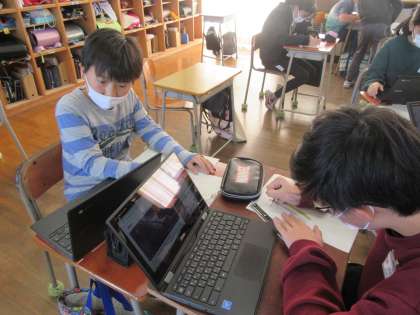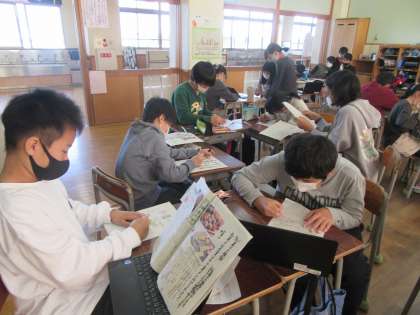国語科の学習では、日本文化について紹介するパンフレットを作成しています。完成まであと少しです!