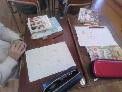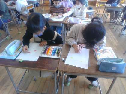 食べ物の名前と注文の仕方を学んだあとで、ペアでピザを作り合いました。