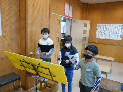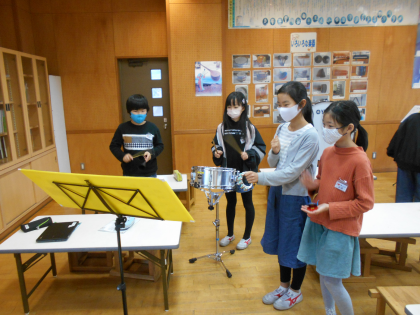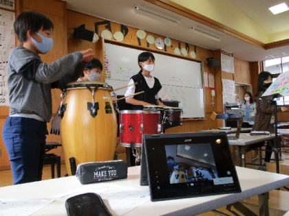 音楽科「打楽器の音楽」ので学習で、アンサンブルをつくっています。クロームブックの動画撮影機能を使って、演奏を振り返るグループもいました。発表会が楽しみですね。