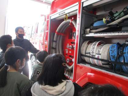3年生では、社会科の学習で消防署見学に行きました。