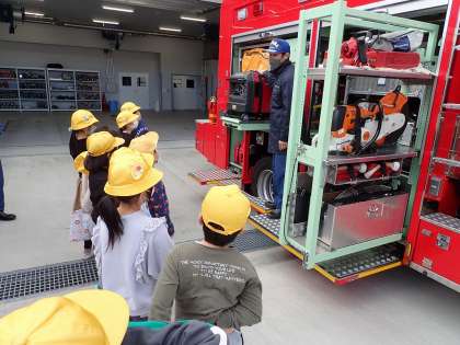 今日は、社会科の学習で消防署見学を行いました。消防署の方の分かりやすい説明と実際に使っている機具を見ることで、充実した時間を過ごすことができました。