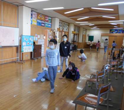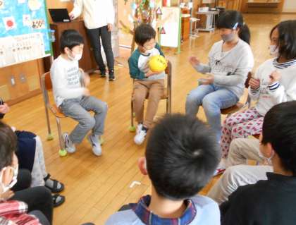 だるまさんが転んだ、ばくだんゲーム、フルーツバスケットと、自分たちで決めたゲームを「なかよく」「たのしく」行いました。